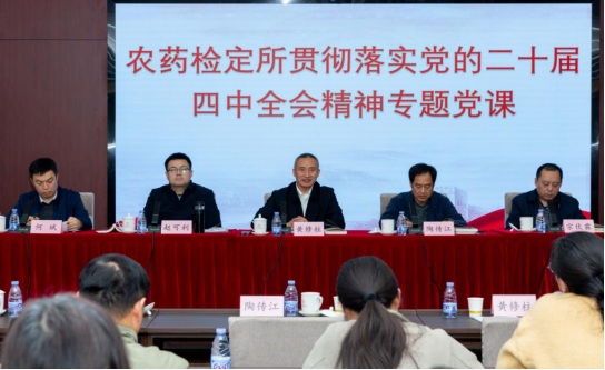 本网讯:12月10日—12日,农药检定所党委举办2025年第4次理论学习中心组(扩大)学习会,专题传达学习党的二十届四中全会精神,深入研读全会公报及《中共中央关于制定国民经济和社会发展第十五个五年规划的建议》核心内容,结合药检工作实际深入研讨,研究贯彻落实举措。全所共100余名干部职工参会学习,黄修柱同志主持会议并讲话。